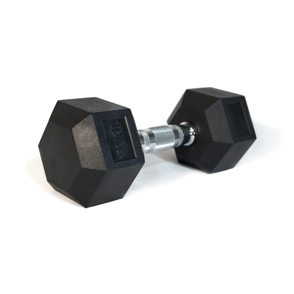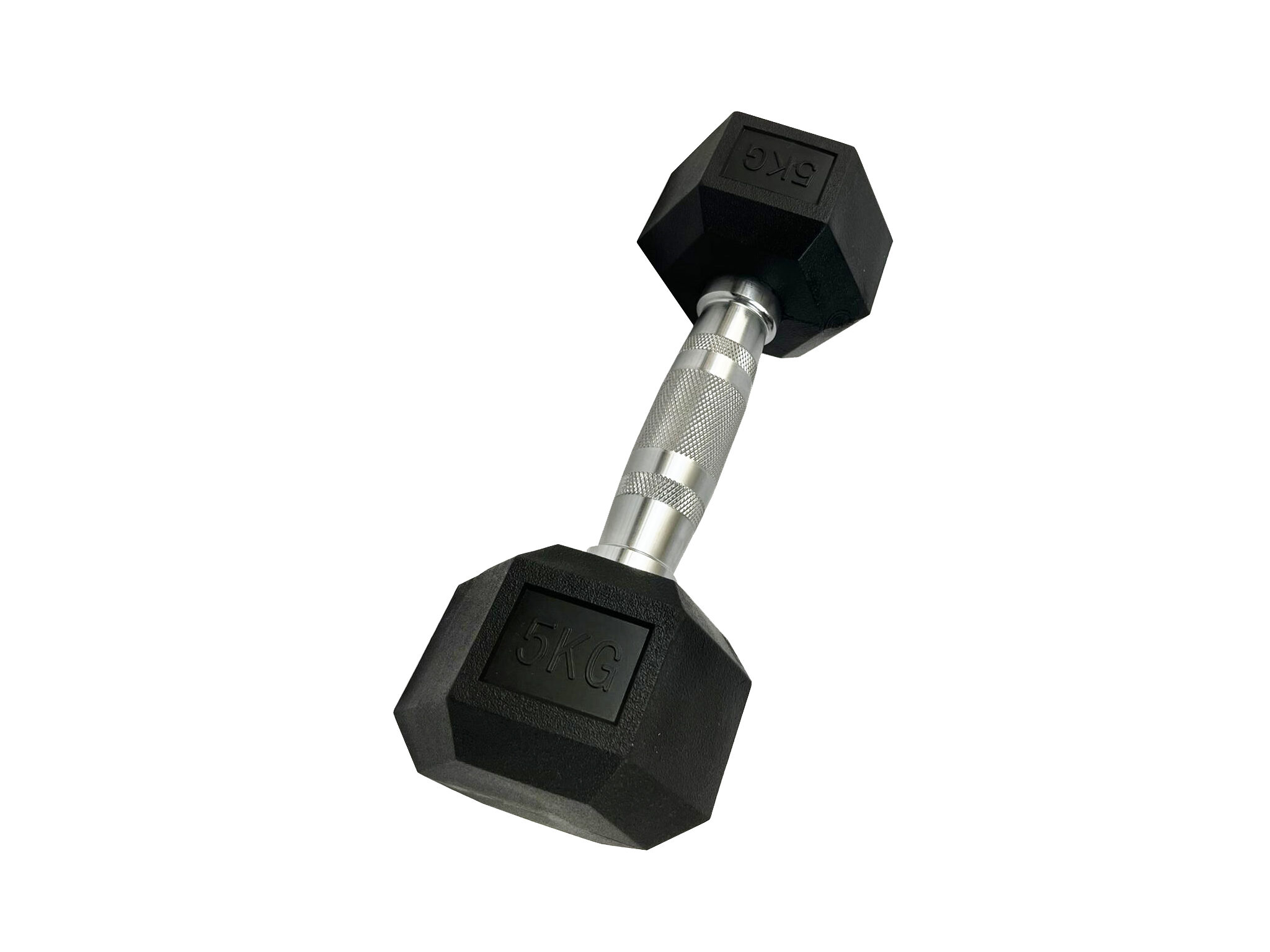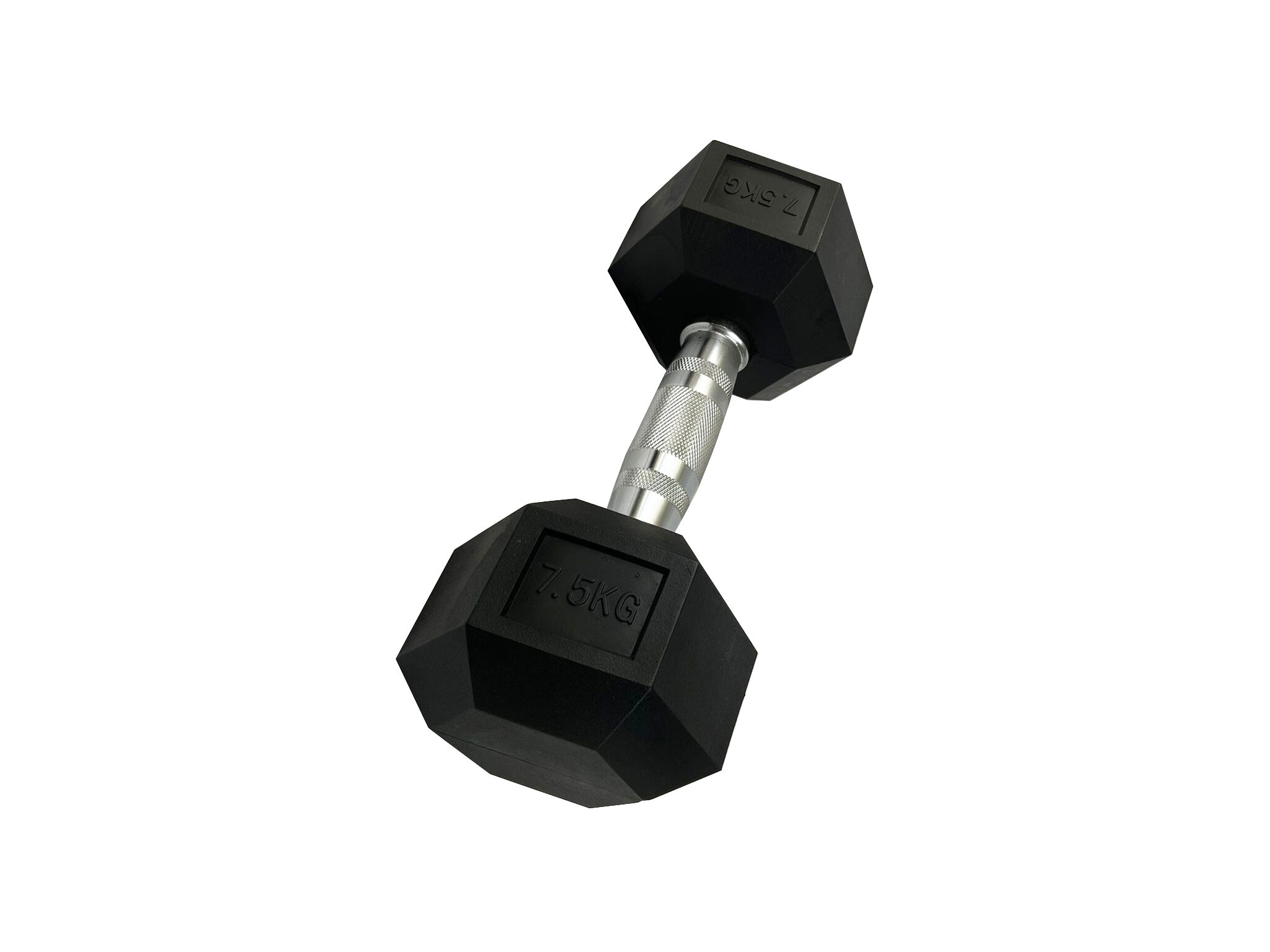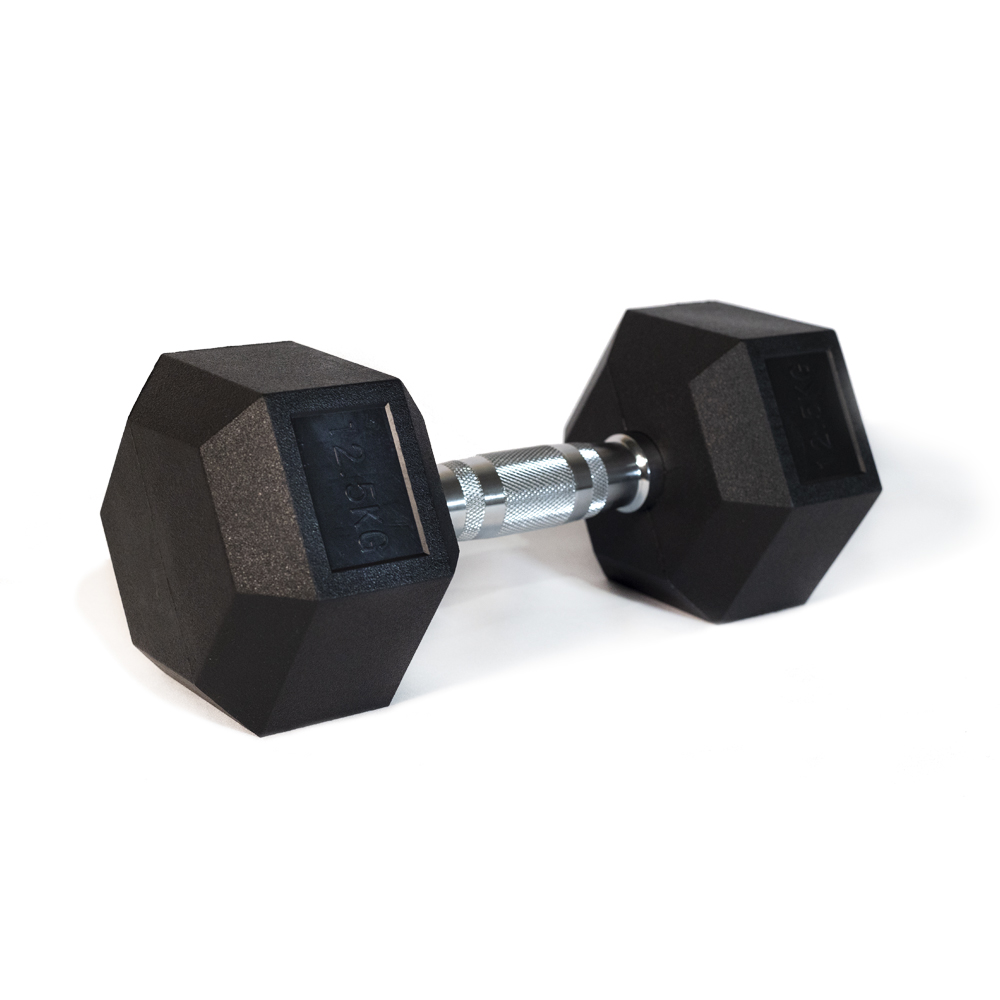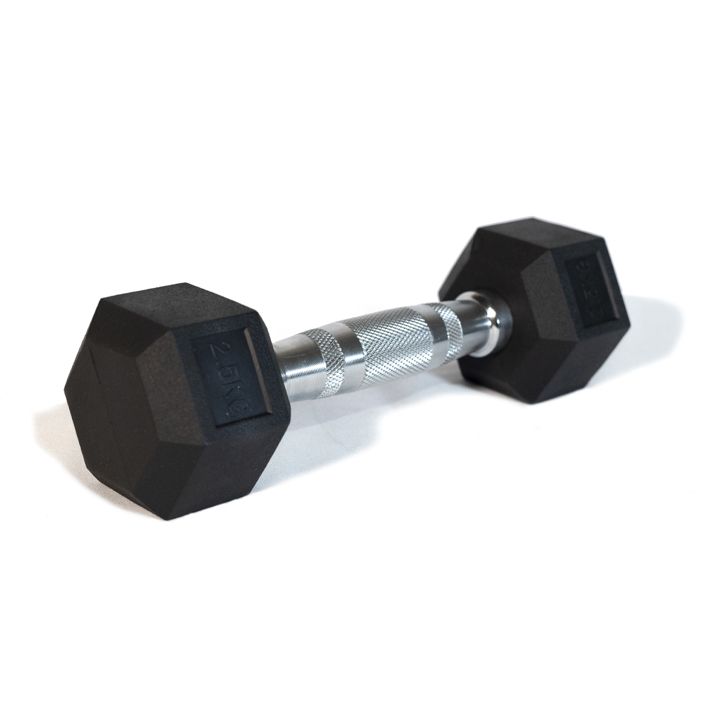 1 par de mancuernas hexagonales en los siguientes pesos: 2.5, 5, 7.5, 10 y 12.5 kg