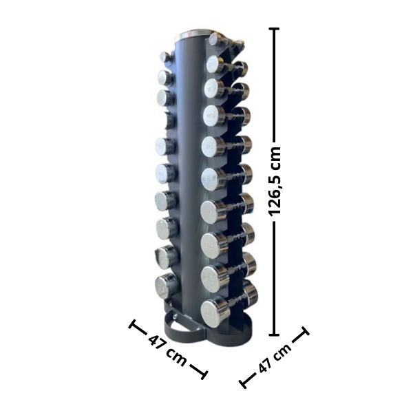 - Estructura Robusta: Soporta un gran peso y ofrece estabilidad, asegurando que tus mancuernas estén siempre seguras.